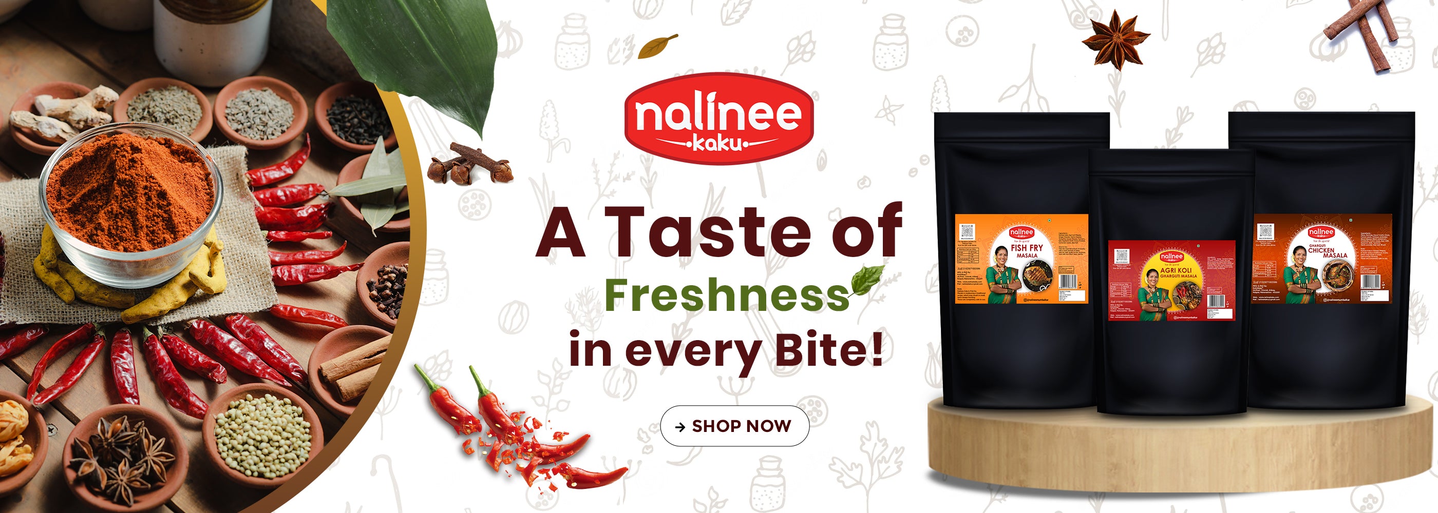 Nalinee Kaku's masalas are rooted in history, crafted from time-honored recipes handed down through generations. Each blend embodies centuries of culinary wisdom, preserving the essence of traditional Aagri Koli and Kokani cooking in every product.